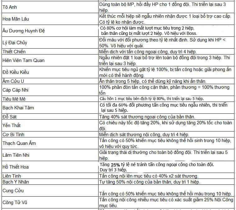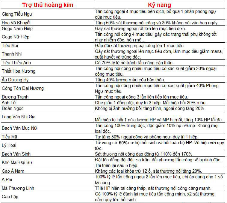 1 Trợ thủ có thể học cả 2 loại Đại hiệp bí tịch và Siêu tuyệt học cho trợ thủ.