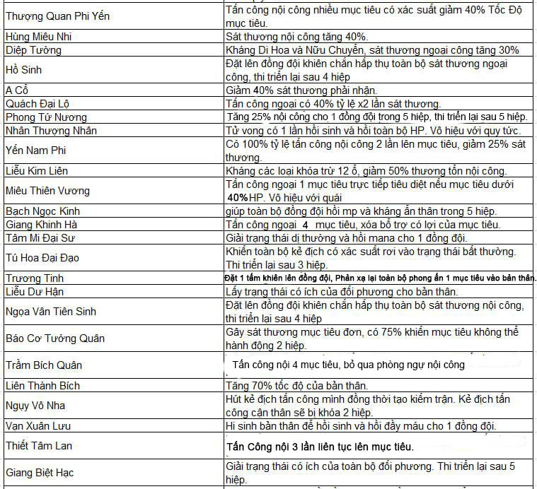 Sau khi đã lên 5 slot skill ta sẽ chọn bộ skill chuẩn ngoại, chuẩn nội hoặc chuẩn phòng ngự để ép cho trợ thủ tương ứng.