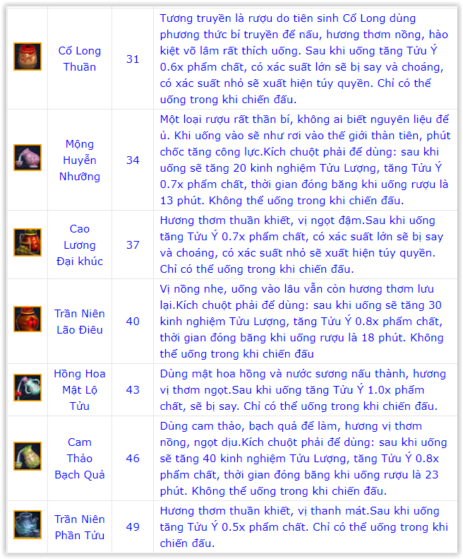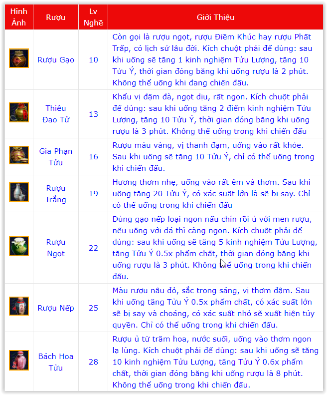 Để học được nghề nấu rượu, bạn cần đến gặp NPC Hùng Miêu Nhi (101, 577) tại Kinh Thành để học kỹ năng nấu rượu.Khi học kỹ năng, bạn sẽ tốn một lượng danh vọng và ngân phiếu nhất định.